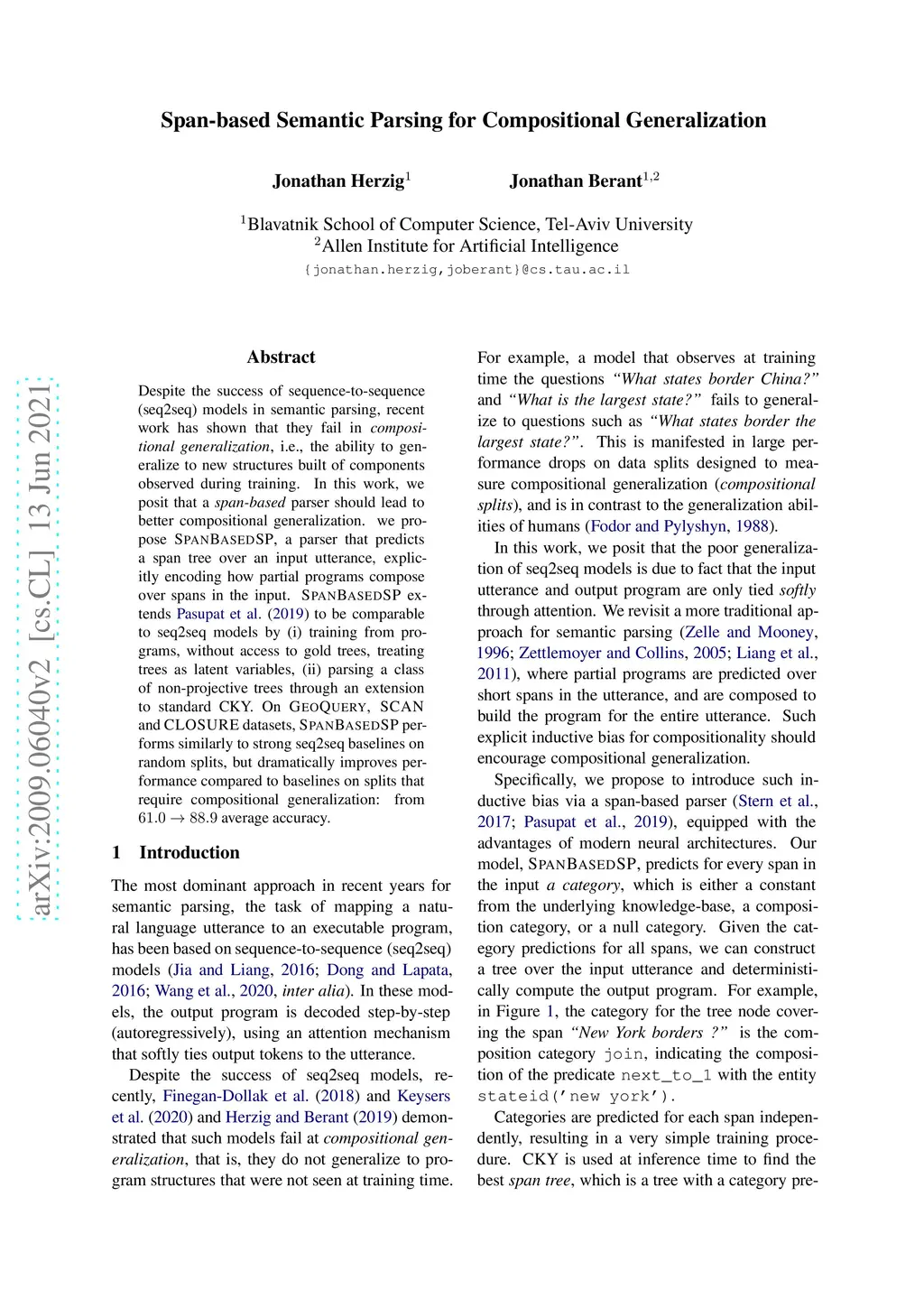 Despite the success of sequence-to-sequence (seq2seq) models in semantic parsing, recent work has shown that they fail in compositional generalization, i.e., the ability to generalize to new structures built of components observed during training. In this work, we posit that a span-based parser should lead to better compositional generalization. we propose SpanBasedSP, a parser that predicts a span tree over an input utterance, explicitly encoding how partial programs compose over spans in the input. SpanBasedSP extends Pasupat et al. (2019) to be comparable to seq2seq models by (i) training from programs, without access to gold trees, treating trees as latent variables, (ii) parsing a class of non-projective trees through an extension to standard CKY. On GeoQuery, SCAN and CLOSURE datasets, SpanBasedSP performs similarly to strong seq2seq baselines on random splits, but dramatically improves performance compared to baselines on splits that require compositional generalization: from average accuracy.