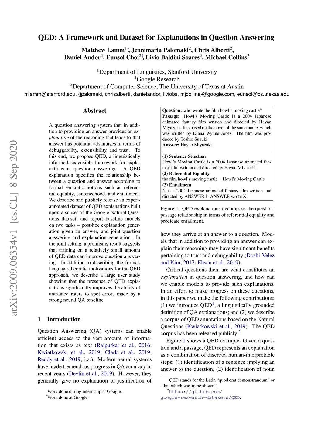QED: A Framework and Dataset for Explanations in Question Answering