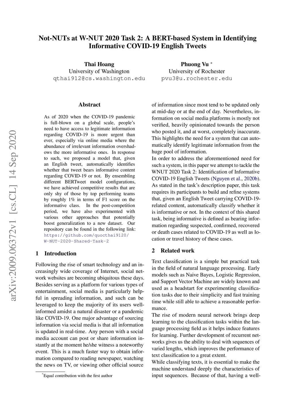Not-NUTs at W-NUT 2020 Task 2: A BERT-based System in Identifying