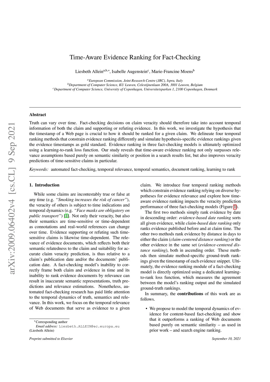Time-Aware Evidence Ranking for Fact-Checking