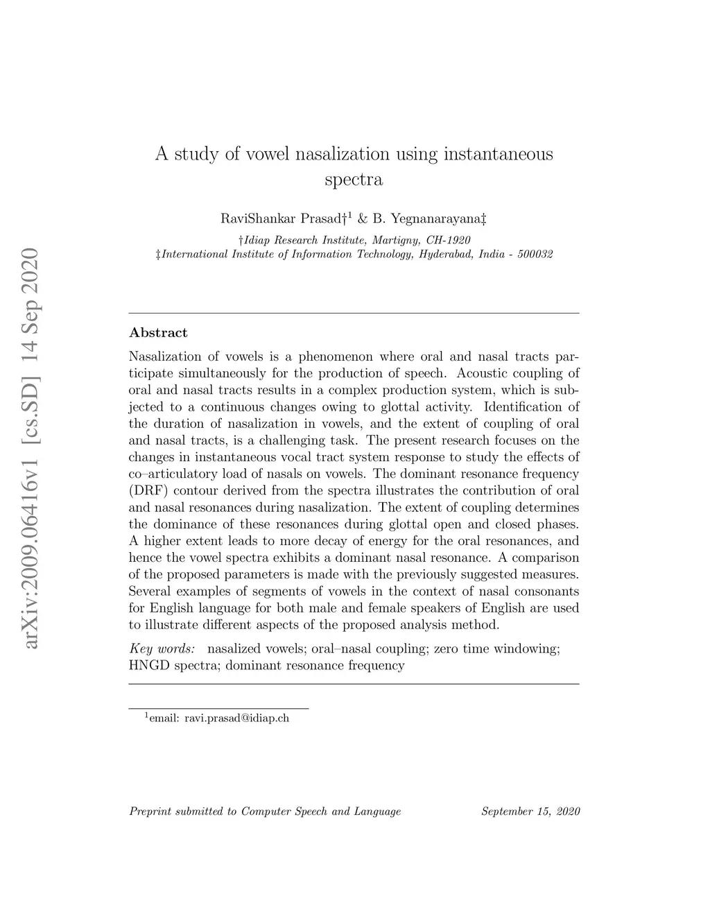 A study of vowel nasalization using instantaneous spectra