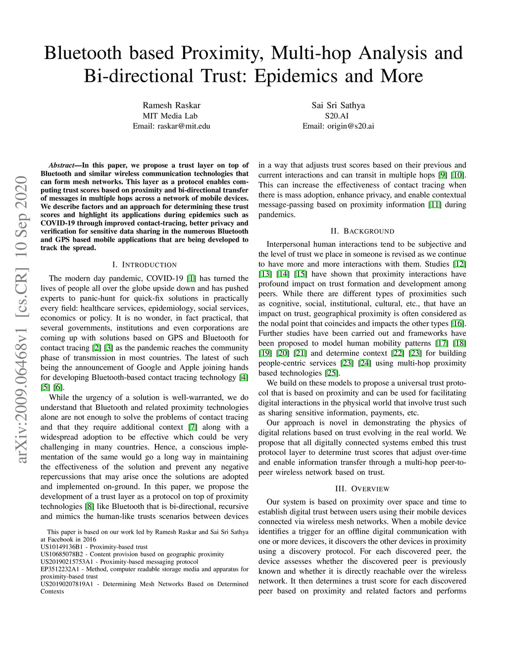 Bluetooth based Proximity, Multi-hop Analysis and Bi-directional Trust: