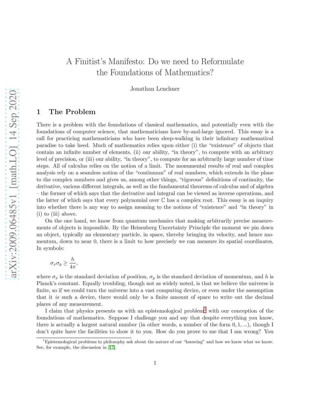 There is a problem with the foundations of classical mathematics, and potentially even with the foundations of computer science, that mathematicians have by-and-large ignored. This essay is a call for practicing mathematicians who have been sleep-walking in their infinitary mathematical paradise to take heed. Much of mathematics relies upon either (i) the "existence'" of objects that contain an infinite number of elements, (ii) our ability, "in theory", to compute with an arbitrary level of precision, or (iii) our ability, "in theory", to compute for an arbitrarily large number of time steps. All of calculus relies on the notion of a limit. The monumental results of real and complex analysis rely on a seamless notion of the "continuum" of real numbers, which extends in the plane to the complex numbers and gives us, among other things, "rigorous" definitions of continuity, the derivative, various different integrals, as well as the fundamental theorems of calculus and of algebra -- the former of which says that the derivative and integral can be viewed as inverse operations, and the latter of which says that every polynomial over has a complex root. This essay is an inquiry into whether there is any way to assign meaning to the notions of "existence" and "in theory'" in (i) to (iii) above.