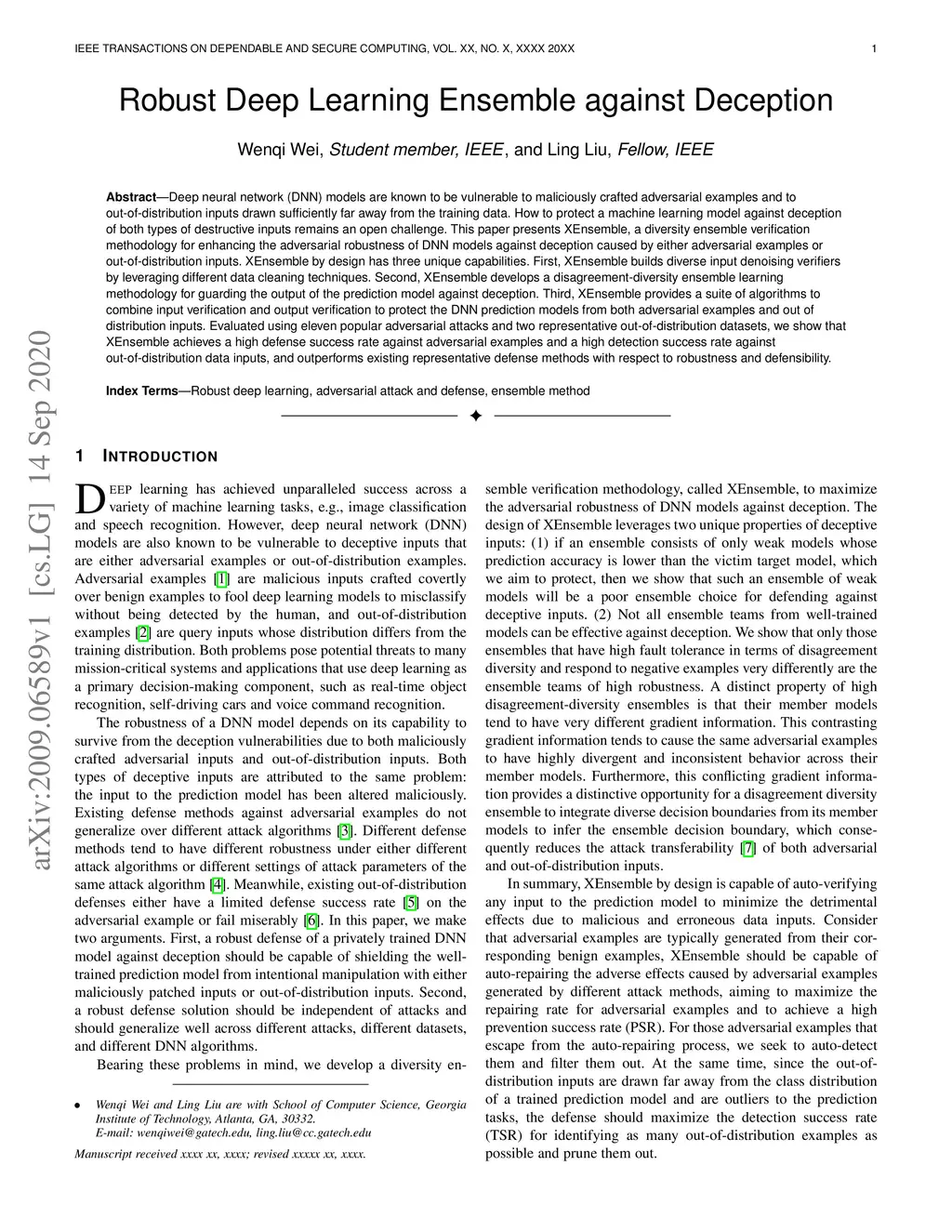 Robust Deep Learning Ensemble against Deception
