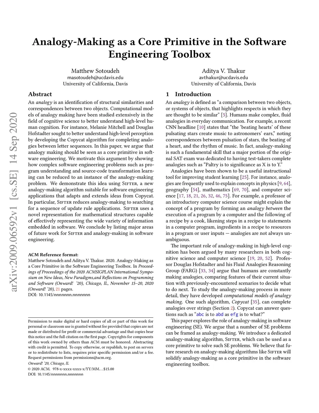 An analogy is an identification of structural similarities and correspondences between two objects. Computational models of analogy making have been studied extensively in the field of cognitive science to better understand high-level human cognition. For instance, Melanie Mitchell and Douglas Hofstadter sought to better understand high-level perception by developing the Copycat algorithm for completing analogies between letter sequences. In this paper, we argue that analogy making should be seen as a core primitive in software engineering. We motivate this argument by showing how complex software engineering problems such as program understanding and source-code transformation learning can be reduced to an instance of the analogy-making problem. We demonstrate this idea using Sifter, a new analogy-making algorithm suitable for software engineering applications that adapts and extends ideas from Copycat. In particular, Sifter reduces analogy-making to searching for a sequence of update rule applications. Sifter uses a novel representation for mathematical structures capable of effectively representing the wide variety of information embedded in software. We conclude by listing major areas of future work for Sifter and analogy-making in software engineering.