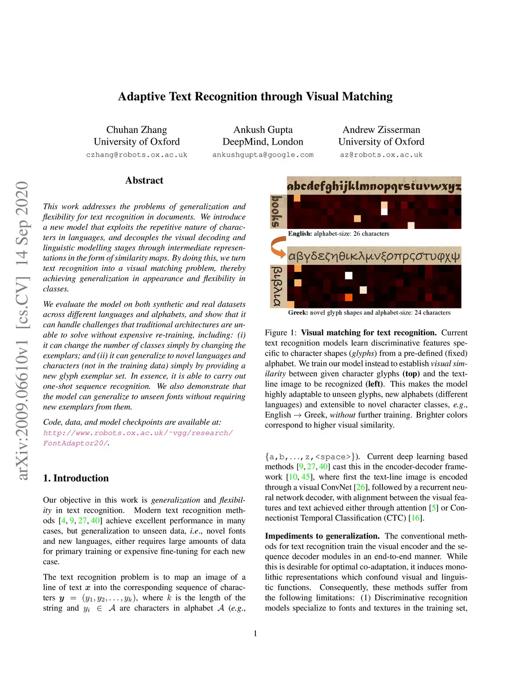 Adaptive Text Recognition through Visual Matching