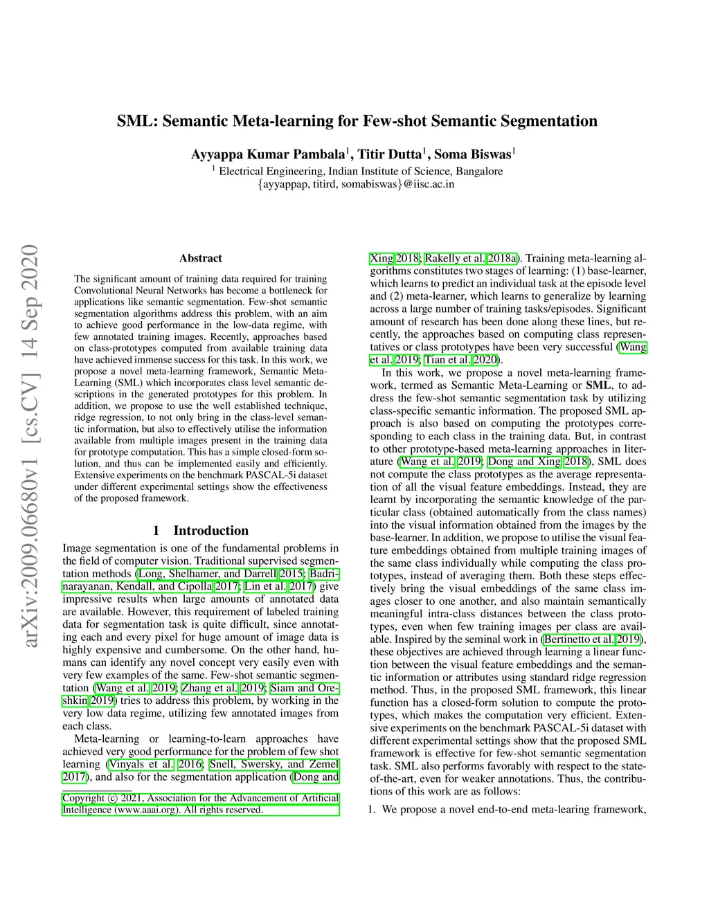SML: Semantic Meta-learning for Few-shot Semantic Segmentation