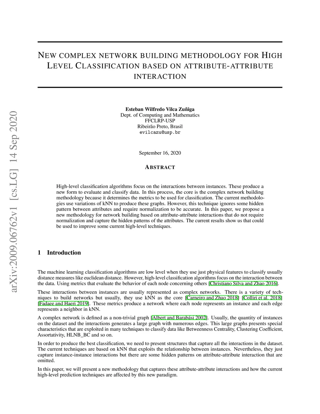 High-level classification algorithms focus on the interactions between instances. These produce a new form to evaluate and classify data. In this process, the core is the complex network building methodology because it determines the metrics to be used for classification. The current methodologies use variations of kNN to produce these graphs. However, this technique ignores some hidden pattern between attributes and require normalization to be accurate. In this paper, we propose a new methodology for network building based on attribute-attribute interactions that do not require normalization and capture the hidden patterns of the attributes. The current results show us that could be used to improve some current high-level techniques.