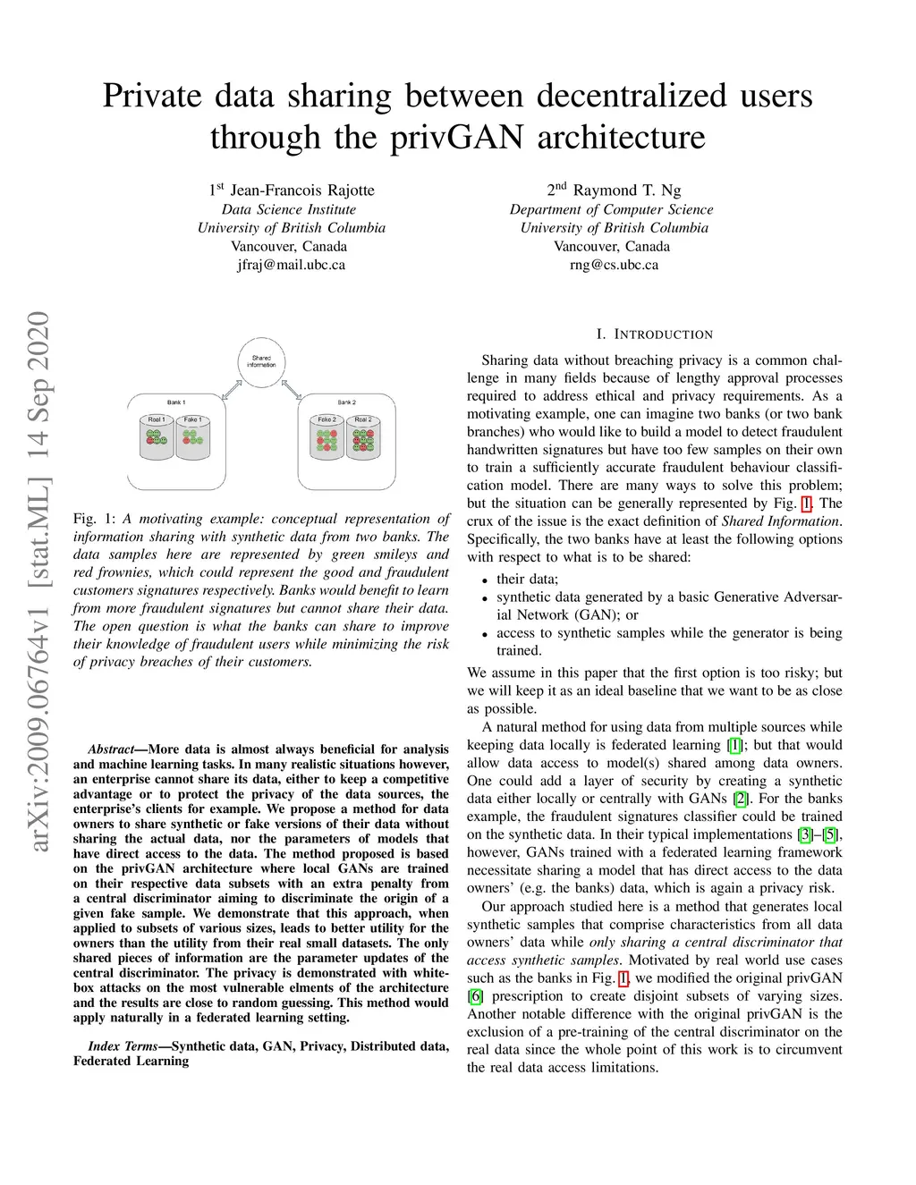 Private data sharing between decentralized users through the privGAN