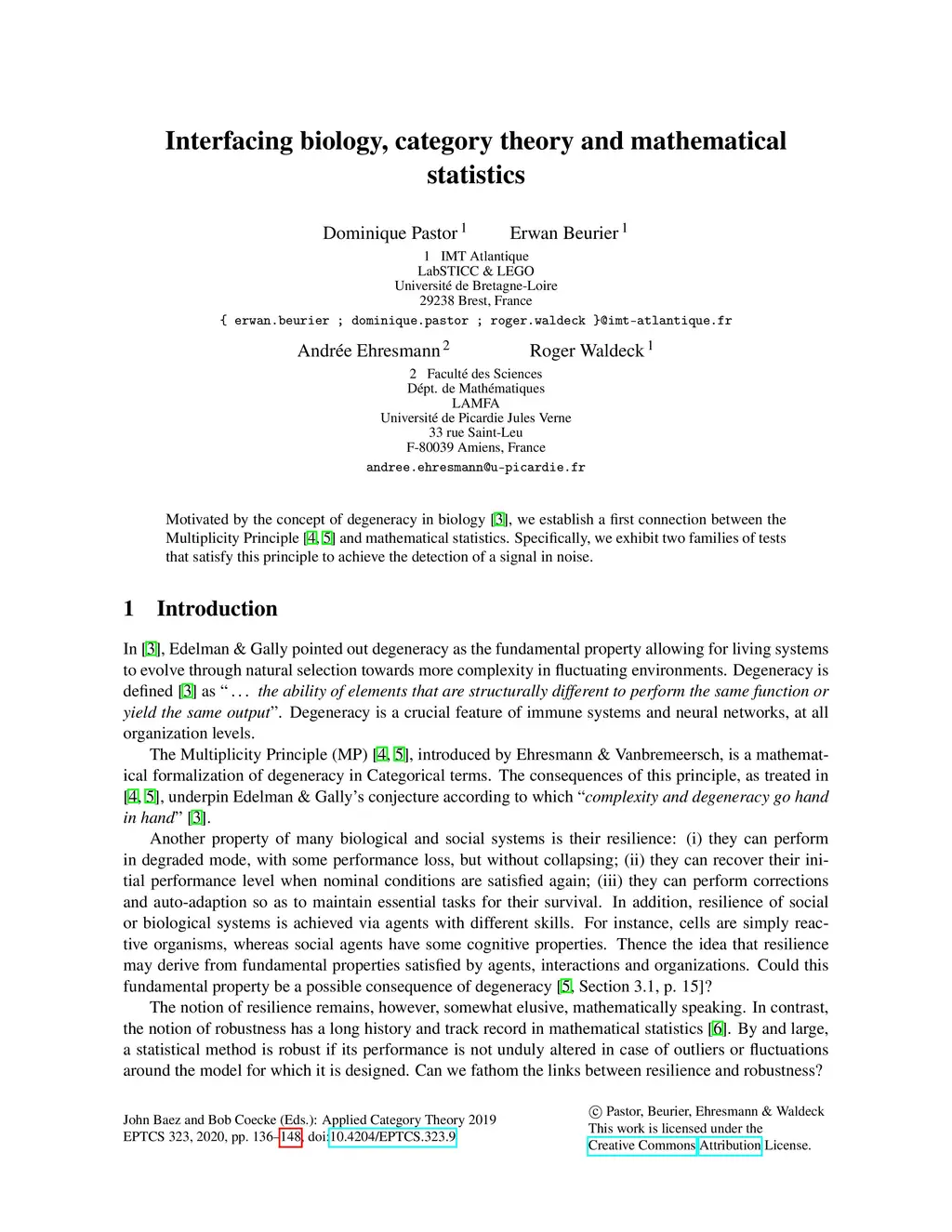 Interfacing biology, category theory and mathematical statistics