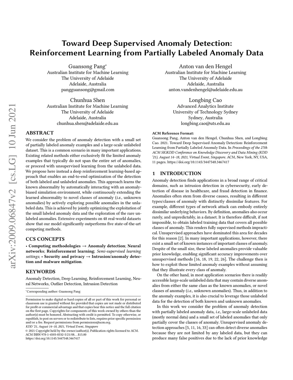 Toward Deep Supervised Anomaly Detection: Reinforcement Learning from