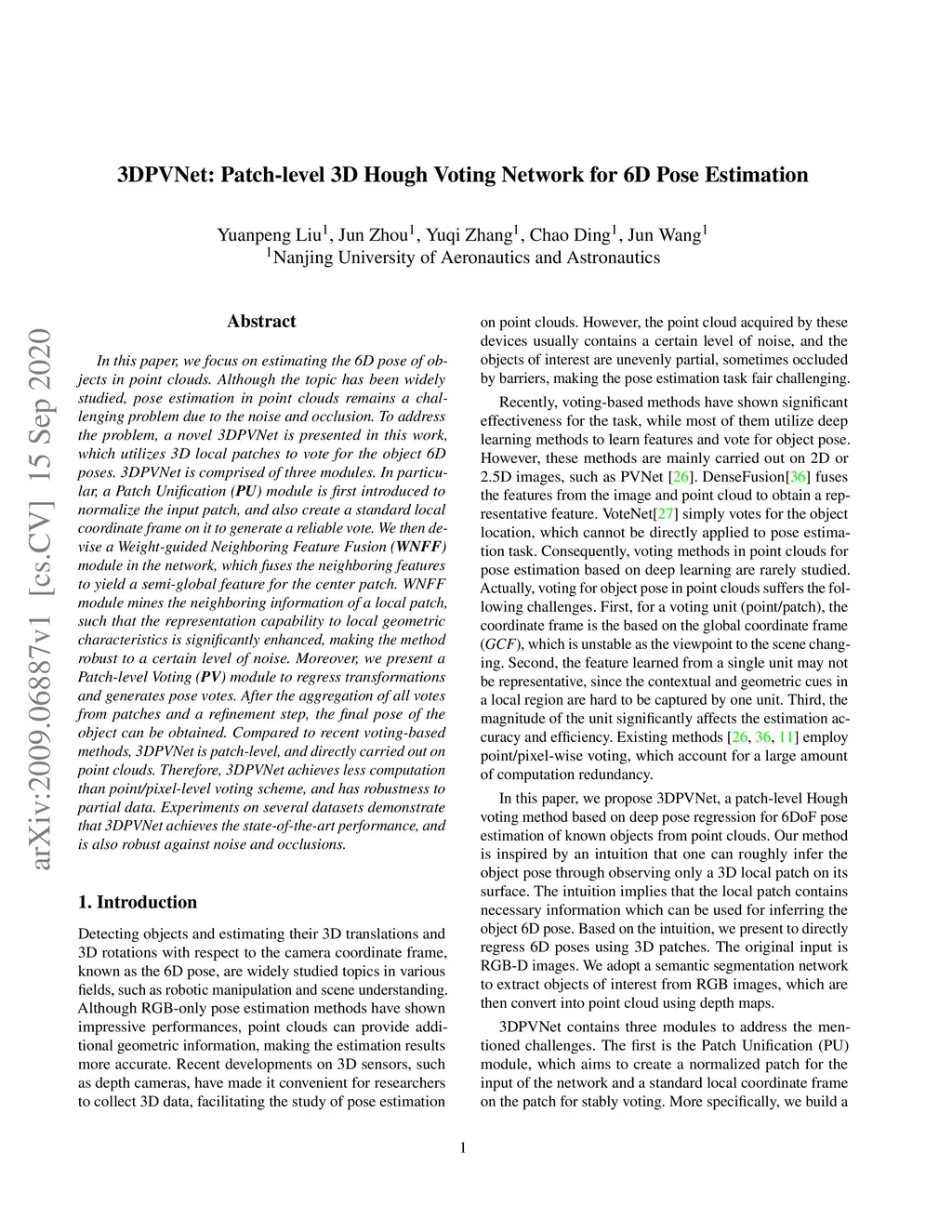 3DPVNet: Patch-level 3D Hough Voting Network for 6D Pose Estimation