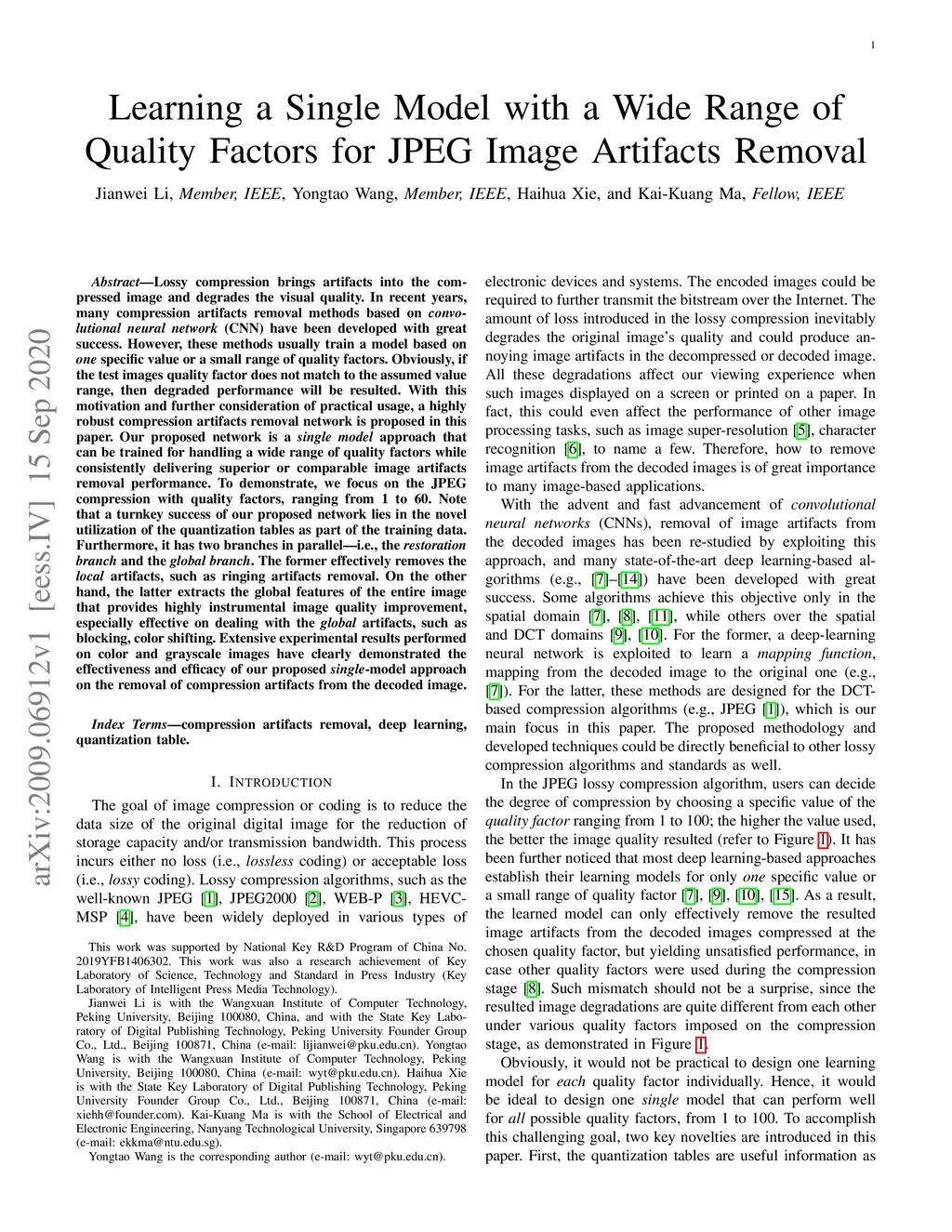Learning a Single Model with a Wide Range of Quality Factors for JPEG