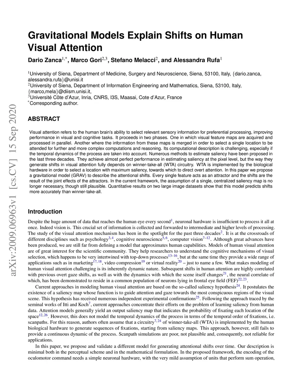 Gravitational Models Explain Shifts on Human Visual Attention