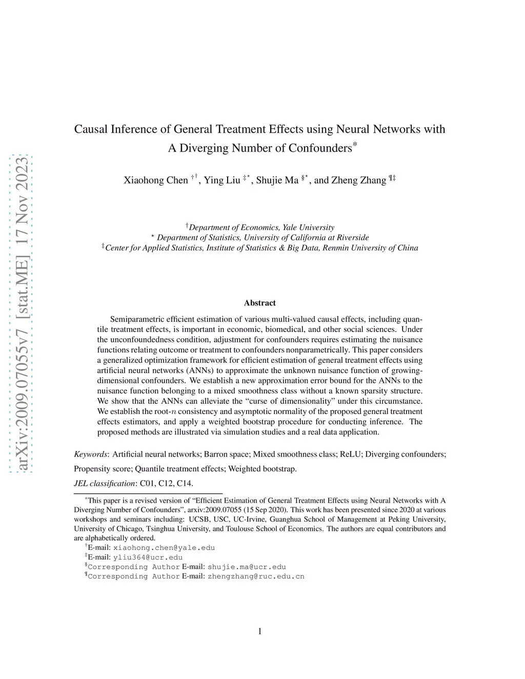 Semiparametric efficient estimation of various multi-valued causal effects, including quantile treatment effects, is important in economic, biomedical, and other social sciences. Under the unconfoundedness condition, adjustment for confounders requires estimating the nuisance functions relating outcome or treatment to confounders nonparametrically. This paper considers a generalized optimization framework for efficient estimation of general treatment effects using artificial neural networks (ANNs) to approximate the unknown nuisance function of growing-dimensional confounders. We establish a new approximation error bound for the ANNs to the nuisance function belonging to a mixed smoothness class without a known sparsity structure. We show that the ANNs can alleviate the "curse of dimensionality" under this circumstance. We establish the root- consistency and asymptotic normality of the proposed general treatment effects estimators, and apply a weighted bootstrap procedure for conducting inference. The proposed methods are illustrated via simulation studies and a real data application.