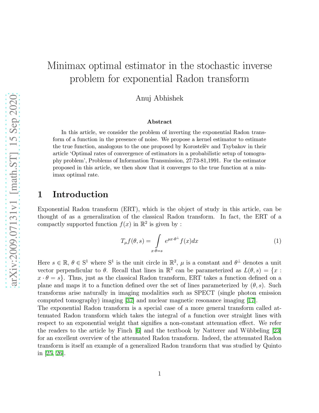 In this article, we consider the problem of inverting the exponential Radon transform of a function in the presence of noise. We propose a kernel estimator to estimate the true function, analogous to the one proposed by Korostel\"{e}v and Tsybakov in their article `Optimal rates of convergence of estimators in a probabilistic setup of tomography problem', Problems of Information Transmission, 27:73-81,1991. For the estimator proposed in this article, we then show that it converges to the true function at a minimax optimal rate.