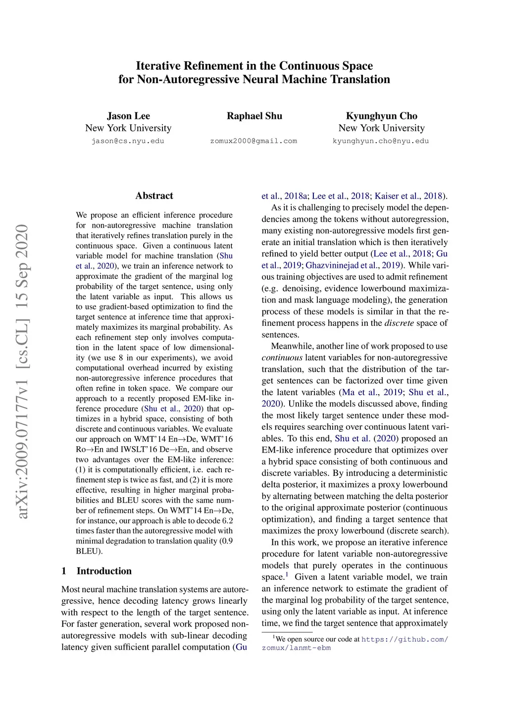 Iterative Refinement in the Continuous Space for Non-Autoregressive