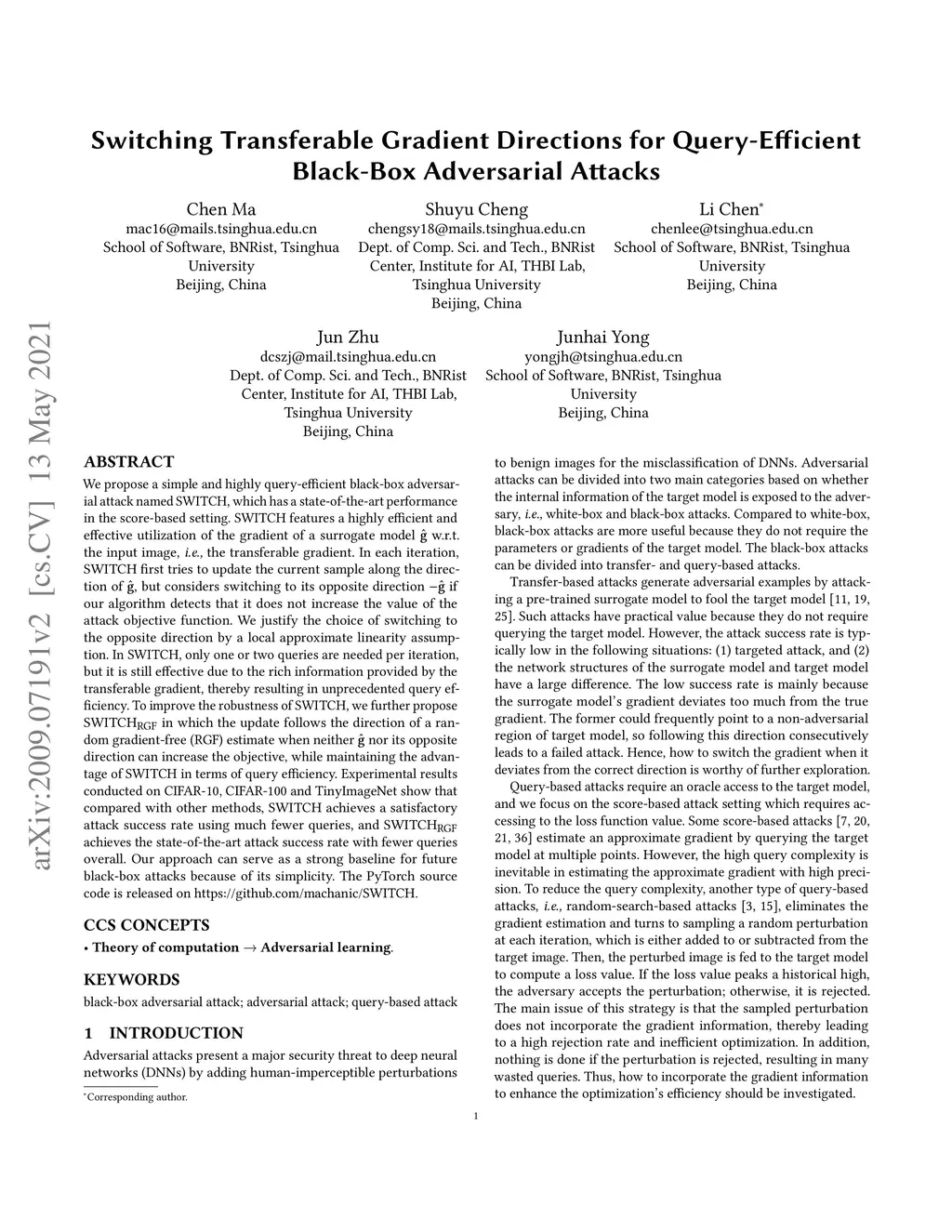 We propose a simple and highly query-efficient black-box adversarial attack named SWITCH, which has a state-of-the-art performance in the score-based setting. SWITCH features a highly efficient and effective utilization of the gradient of a surrogate model w.r.t. the input image, i.e., the transferable gradient. In each iteration, SWITCH first tries to update the current sample along the direction of , but considers switching to its opposite direction if our algorithm detects that it does not increase the value of the attack objective function. We justify the choice of switching to the opposite direction by a local approximate linearity assumption. In SWITCH, only one or two queries are needed per iteration, but it is still effective due to the rich information provided by the transferable gradient, thereby resulting in unprecedented query efficiency. To improve the robustness of SWITCH, we further propose SWITCH in which the update follows the direction of a random gradient-free (RGF) estimate when neither nor its opposite direction can increase the objective, while maintaining the advantage of SWITCH in terms of query efficiency. Experimental results conducted on CIFAR-10, CIFAR-100 and TinyImageNet show that compared with other methods, SWITCH achieves a satisfactory attack success rate using much fewer queries, and SWITCH achieves the state-of-the-art attack success rate with fewer queries overall. Our approach can serve as a strong baseline for future black-box attacks because of its simplicity. The PyTorch source code is released on https://github.com/machanic/SWITCH.