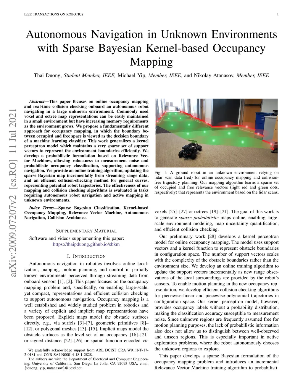 Autonomous Navigation in Unknown Environments with Sparse Bayesian