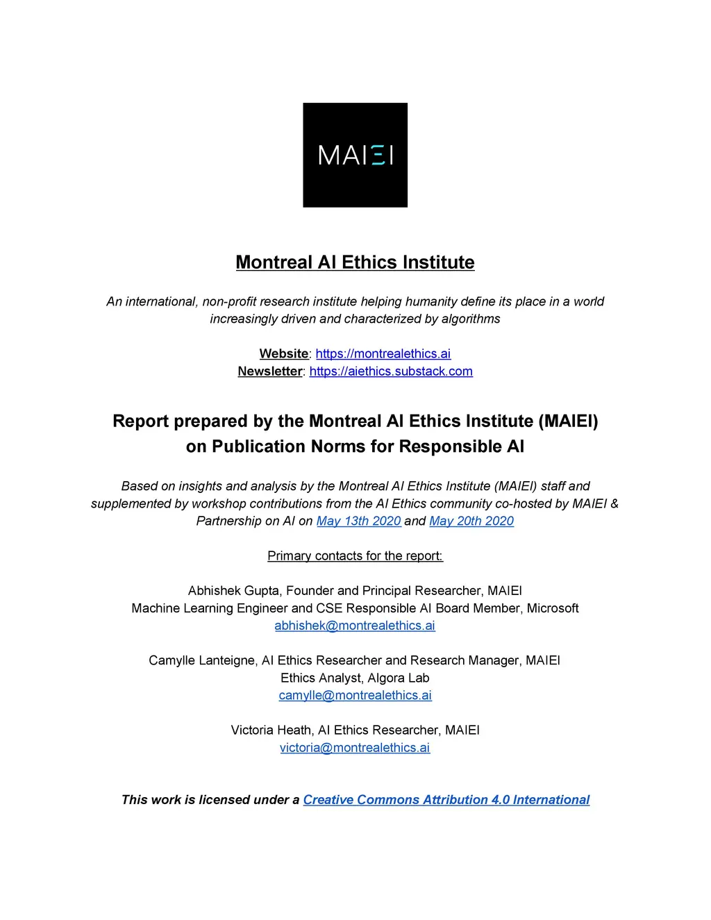 Report prepared by the Montreal AI Ethics Institute (MAIEI) on
