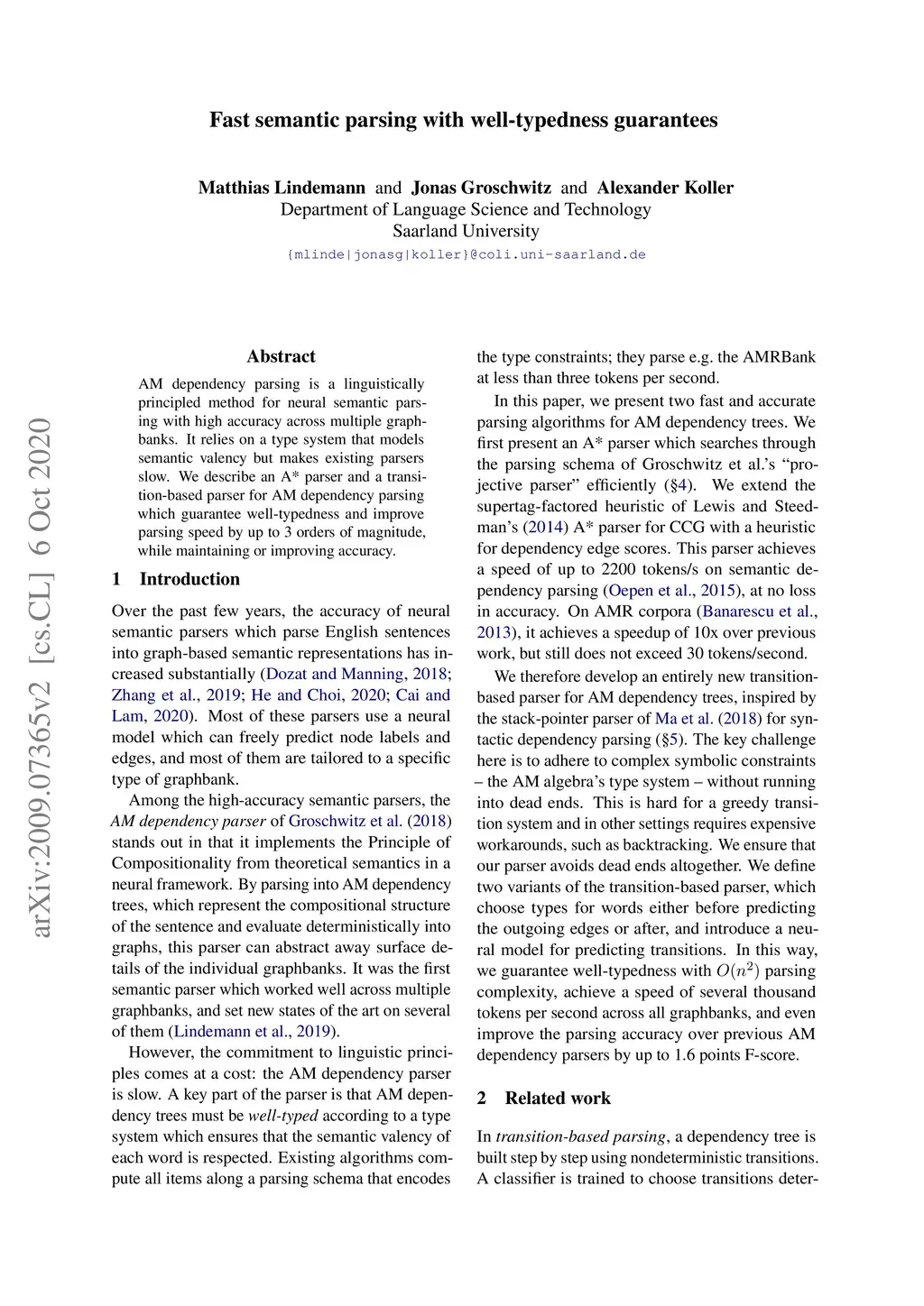 AM dependency parsing is a linguistically principled method for neural semantic parsing with high accuracy across multiple graphbanks. It relies on a type system that models semantic valency but makes existing parsers slow. We describe an A* parser and a transition-based parser for AM dependency parsing which guarantee well-typedness and improve parsing speed by up to 3 orders of magnitude, while maintaining or improving accuracy.
