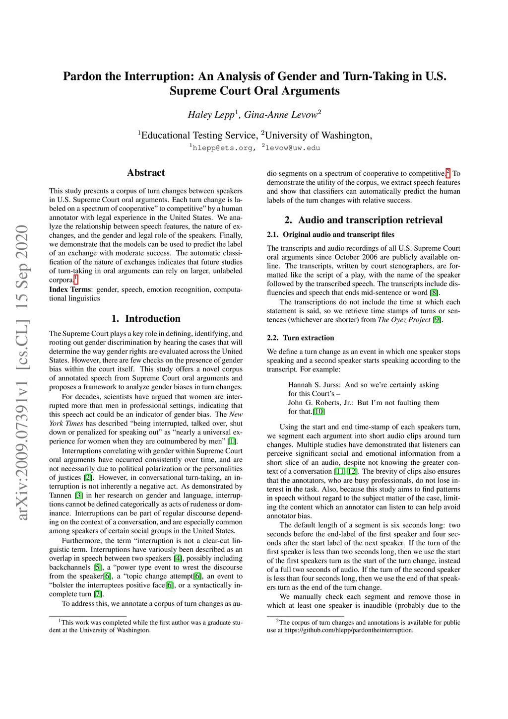 Pardon the Interruption: An Analysis of Gender and Turn-Taking in U.S.