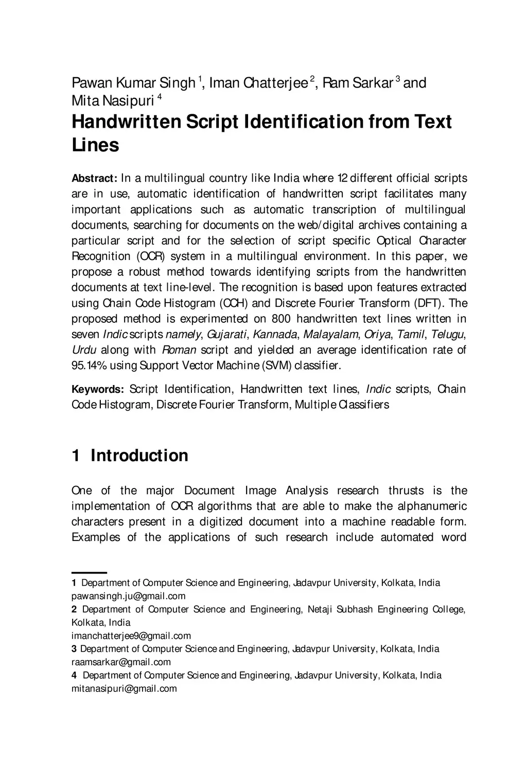 Handwritten Script Identification from Text Lines