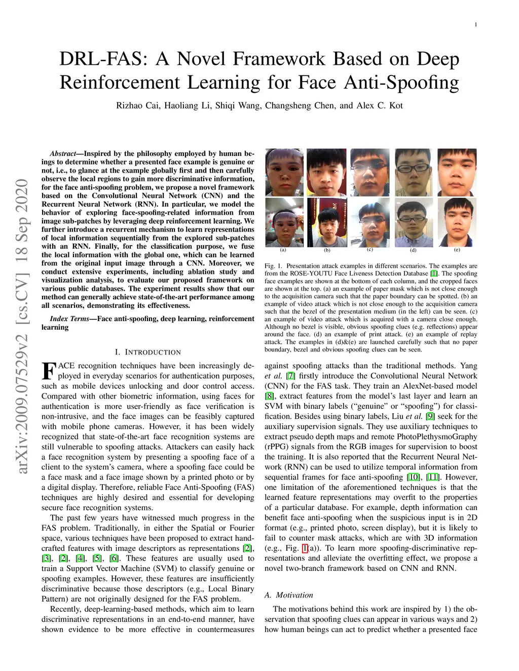 DRL-FAS: A Novel Framework Based on Deep Reinforcement Learning for Face