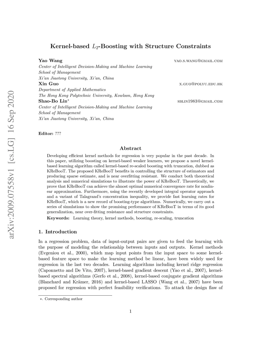 Developing efficient kernel methods for regression is very popular in the past decade. In this paper, utilizing boosting on kernel-based weaker learners, we propose a novel kernel-based learning algorithm called kernel-based re-scaled boosting with truncation, dubbed as KReBooT. The proposed KReBooT benefits in controlling the structure of estimators and producing sparse estimate, and is near overfitting resistant. We conduct both theoretical analysis and numerical simulations to illustrate the power of KReBooT. Theoretically, we prove that KReBooT can achieve the almost optimal numerical convergence rate for nonlinear approximation. Furthermore, using the recently developed integral operator approach and a variant of Talagrand's concentration inequality, we provide fast learning rates for KReBooT, which is a new record of boosting-type algorithms. Numerically, we carry out a series of simulations to show the promising performance of KReBooT in terms of its good generalization, near over-fitting resistance and structure constraints.