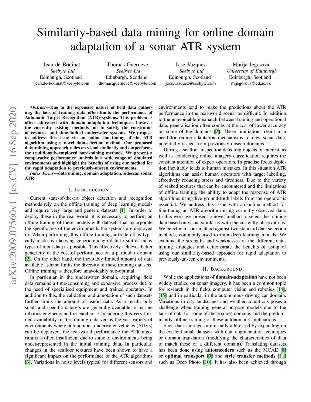 Similarity-based data mining for online domain adaptation of a sonar ATR