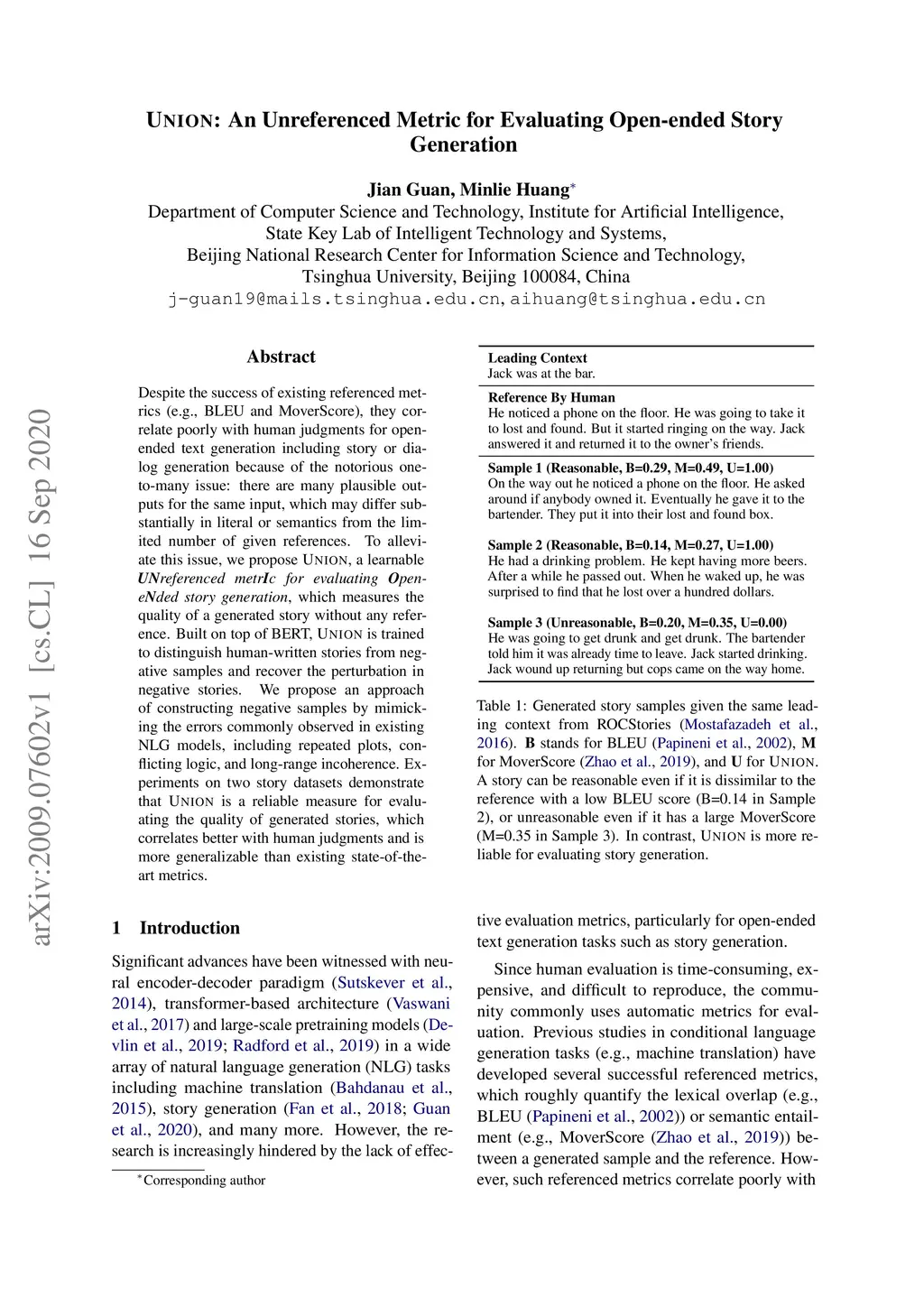 UNION: An Unreferenced Metric for Evaluating Open-ended Story Generation