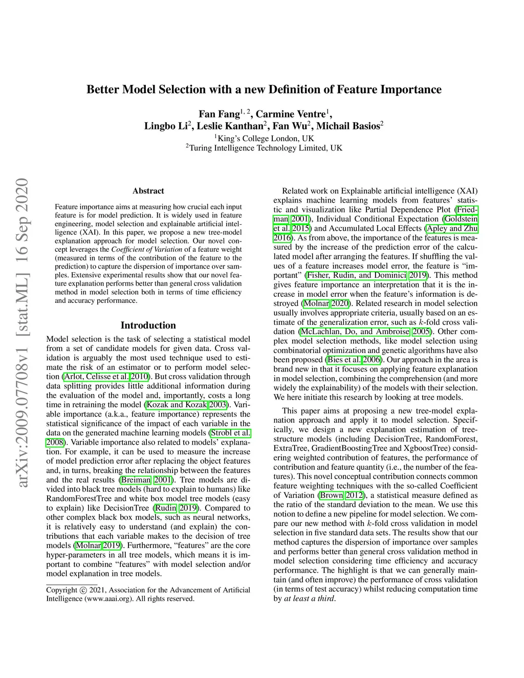 Feature importance aims at measuring how crucial each input feature is for model prediction. It is widely used in feature engineering, model selection and explainable artificial intelligence (XAI). In this paper, we propose a new tree-model explanation approach for model selection. Our novel concept leverages the Coefficient of Variation of a feature weight (measured in terms of the contribution of the feature to the prediction) to capture the dispersion of importance over samples. Extensive experimental results show that our novel feature explanation performs better than general cross validation method in model selection both in terms of time efficiency and accuracy performance.