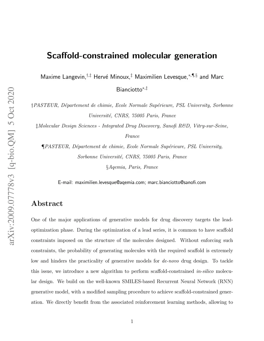 One of the major applications of generative models for drug Discovery targets the lead-optimization phase. During the optimization of a lead series, it is common to have scaffold constraints imposed on the structure of the molecules designed. Without enforcing such constraints, the probability of generating molecules with the required scaffold is extremely low and hinders the practicality of generative models for de-novo drug design. To tackle this issue, we introduce a new algorithm to perform scaffold-constrained in-silico molecular design. We build on the well-known SMILES-based Recurrent Neural Network (RNN) generative model, with a modified sampling procedure to achieve scaffold-constrained generation. We directly benefit from the associated reinforcement Learning methods, allowing to design molecules optimized for different properties while exploring only the relevant chemical space. We showcase the method's ability to perform scaffold-constrained generation on various tasks: designing novel molecules around scaffolds extracted from SureChEMBL chemical series, generating novel active molecules on the Dopamine Receptor D2 (DRD2) target, and, finally, designing predicted actives on the MMP-12 series, an industrial lead-optimization project.