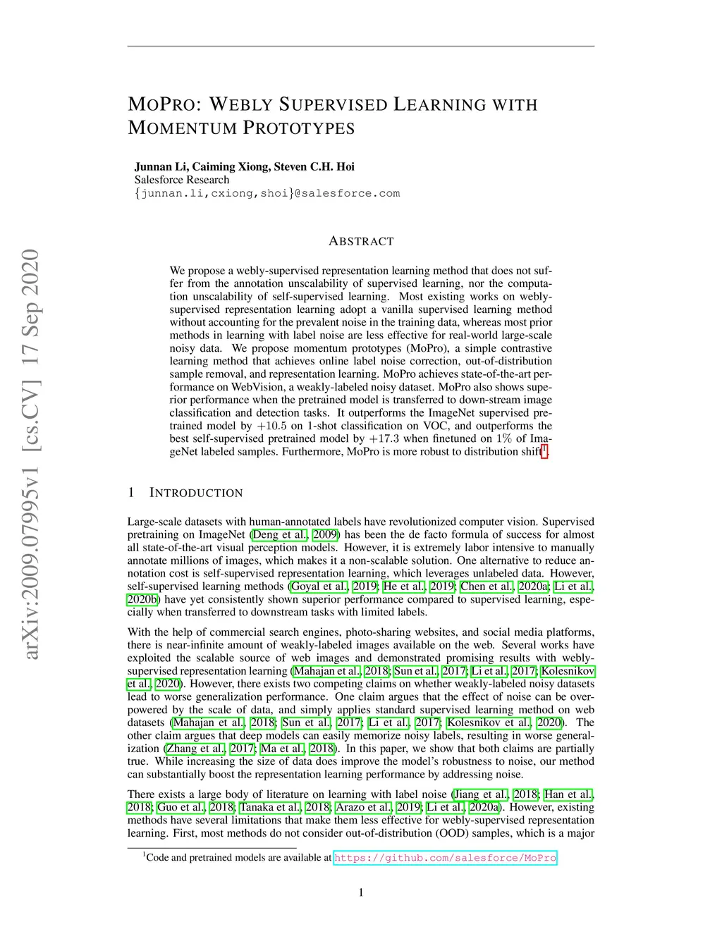 MoPro: Webly Supervised Learning with Momentum Prototypes