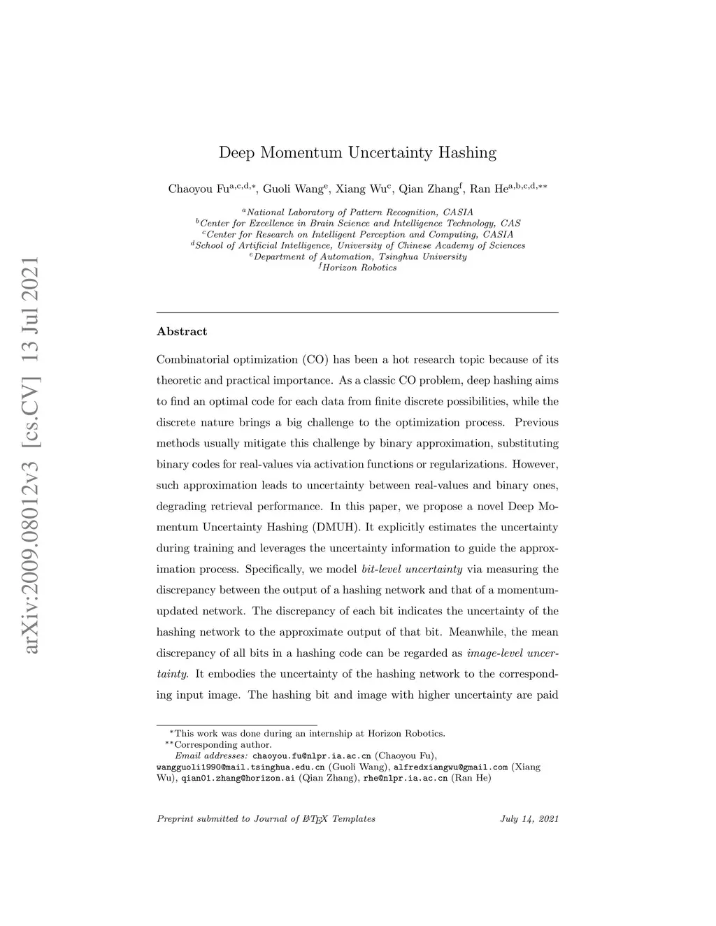 Deep Momentum Uncertainty Hashing