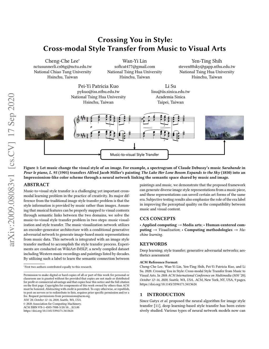 Crossing You in Style: Cross-modal Style Transfer from Music to Visual
