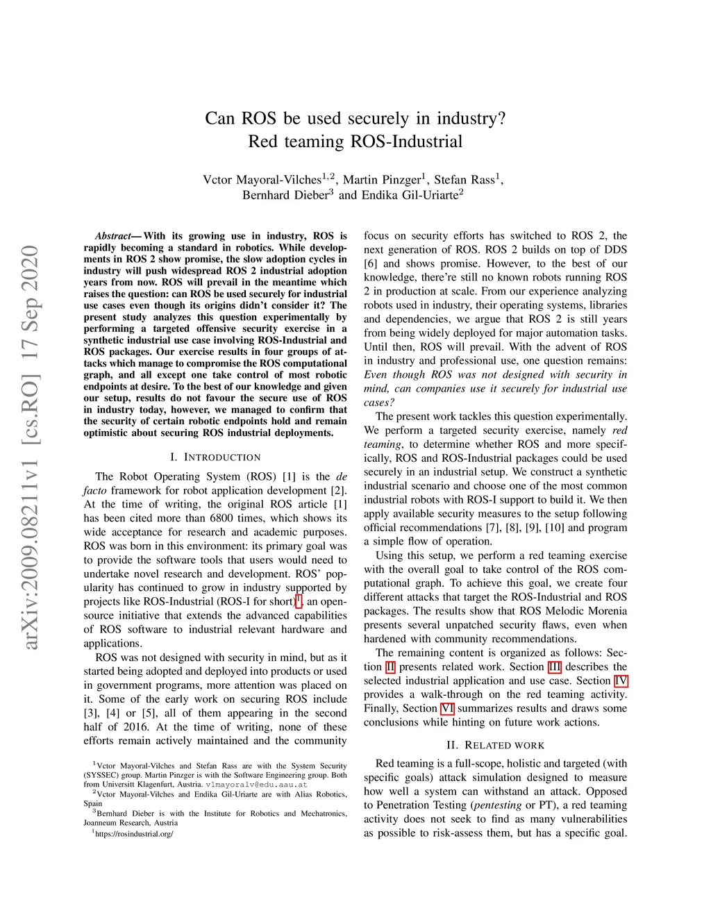 Can ROS be used securely in industry? Red teaming ROS-Industrial