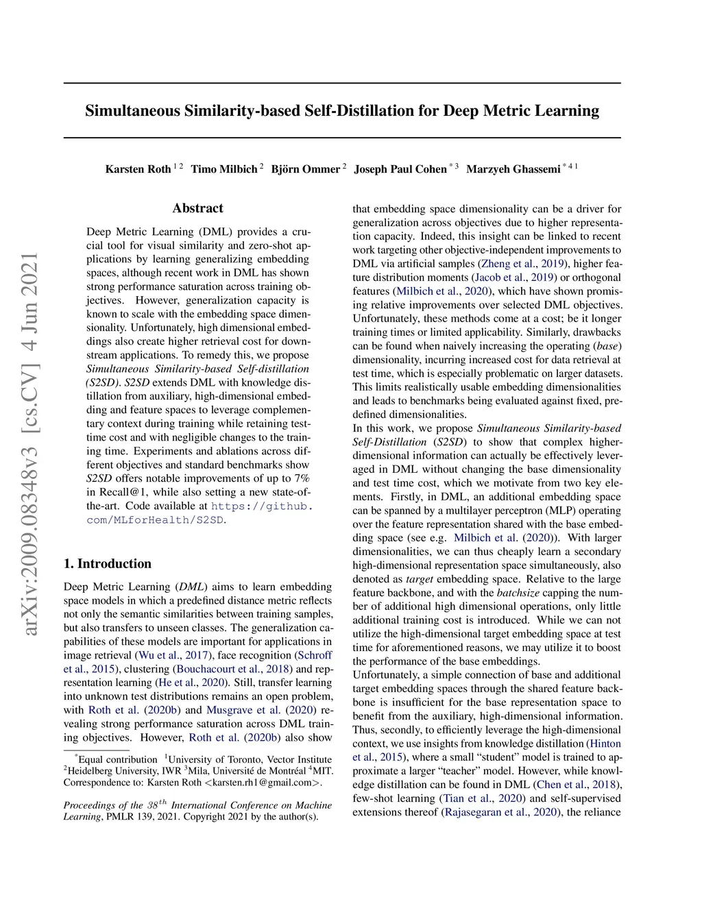 S2SD: Simultaneous Similarity-based Self-Distillation for Deep Metric