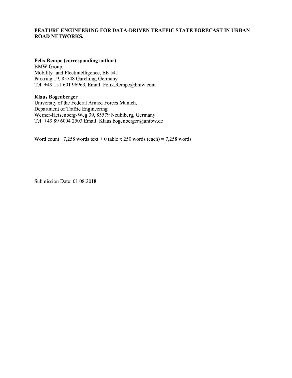 Feature Engineering for Data-driven Traffic State Forecast in Urban Road