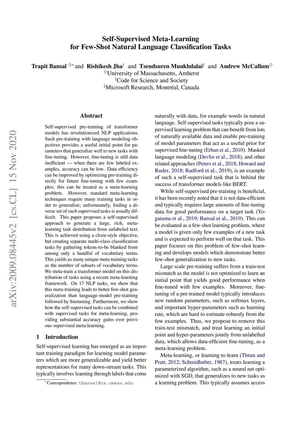 Self-Supervised Meta-Learning for Few-Shot Natural Language