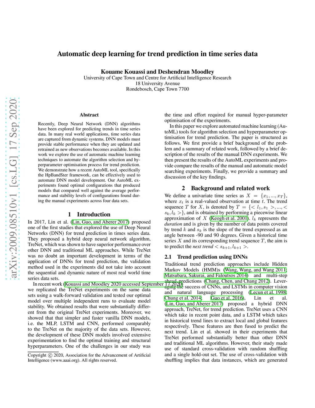 Automatic deep learning for trend prediction in time series data