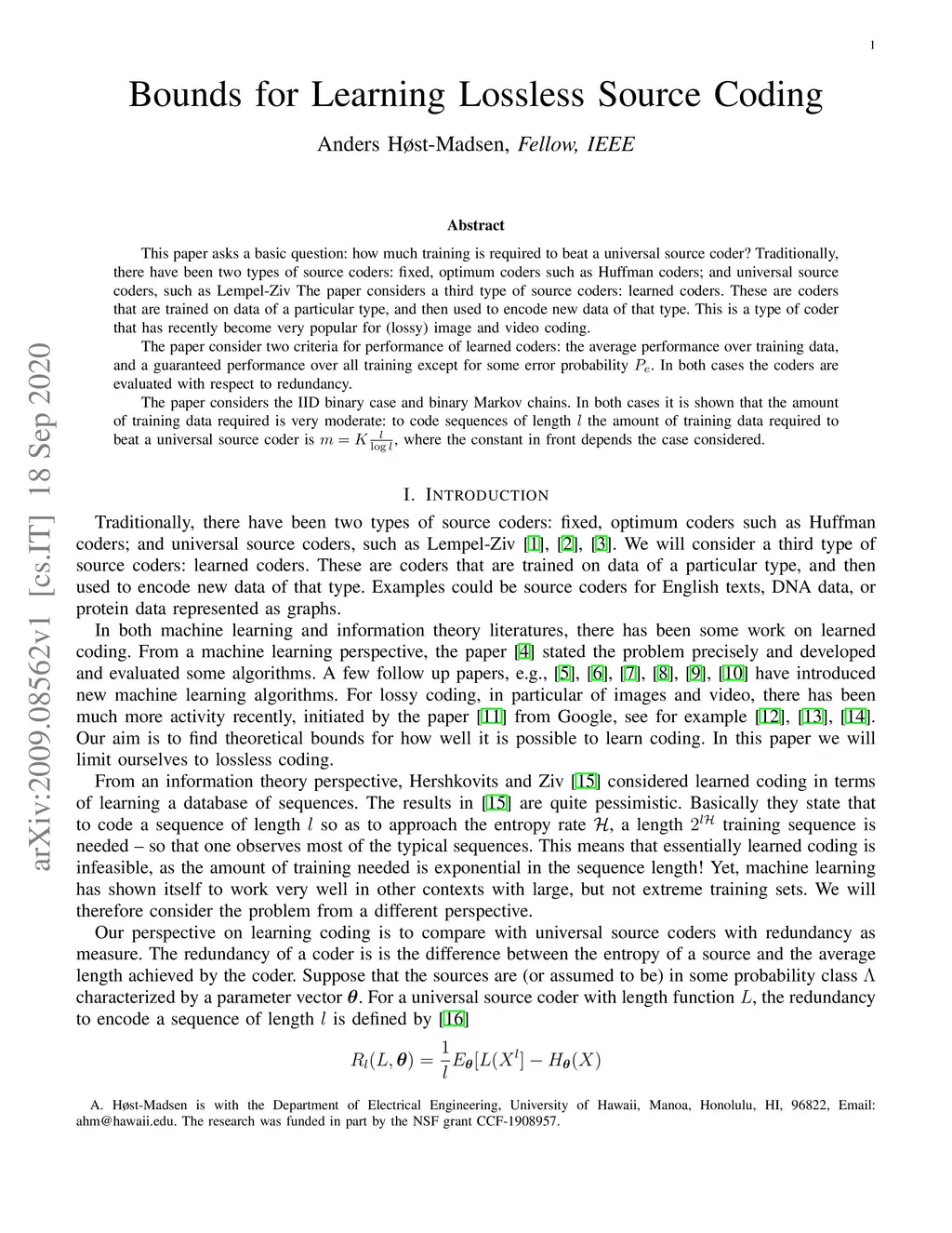 This paper asks a basic question: how much training is required to beat a universal source coder? Traditionally, there have been two types of source coders: fixed, optimum coders such as Huffman coders; and universal source coders, such as Lempel-Ziv The paper considers a third type of source coders: learned coders. These are coders that are trained on data of a particular type, and then used to encode new data of that type. This is a type of coder that has recently become very popular for (lossy) image and video coding. The paper consider two criteria for performance of learned coders: the average performance over training data, and a guaranteed performance over all training except for some error probability . In both cases the coders are evaluated with respect to redundancy. The paper considers the IID binary case and binary Markov chains. In both cases it is shown that the amount of training data required is very moderate: to code sequences of length the amount of training data required to beat a universal source coder is , where the constant in front depends the case considered.