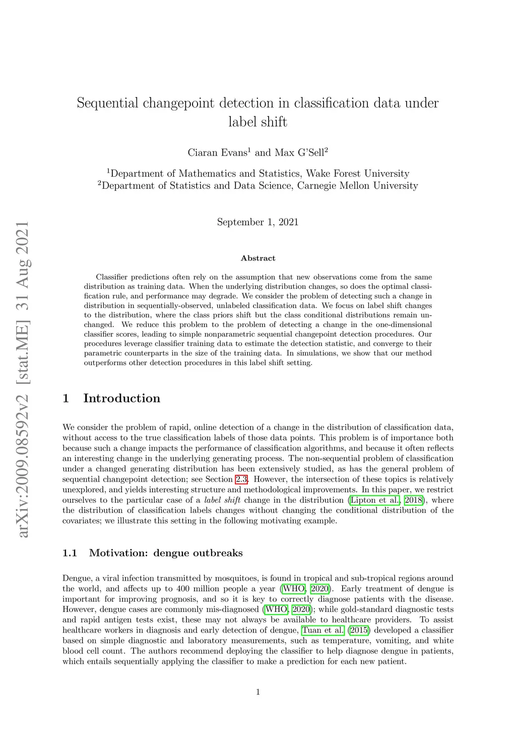 Sequential changepoint detection in classification data under label