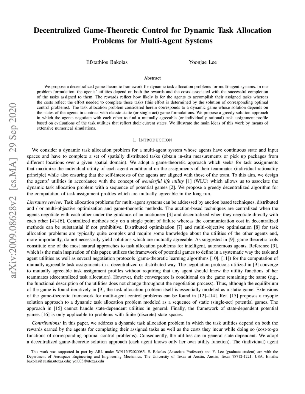 Decentralized Game-Theoretic Control for Dynamic Task Allocation