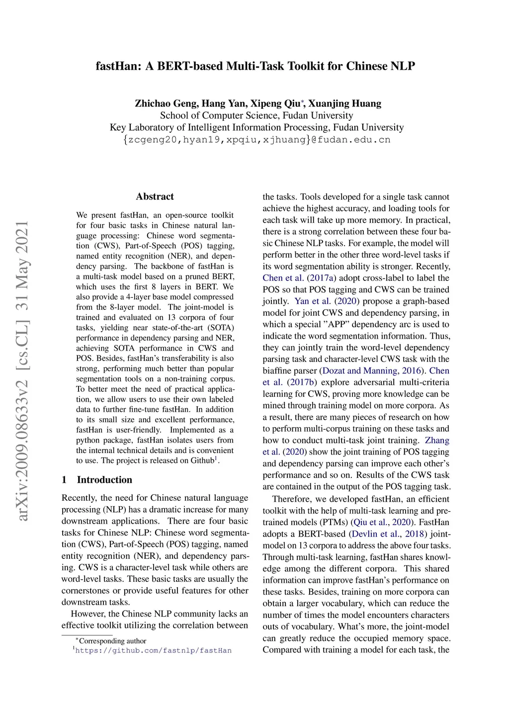 fastHan: A BERT-based Multi-Task Toolkit for Chinese NLP