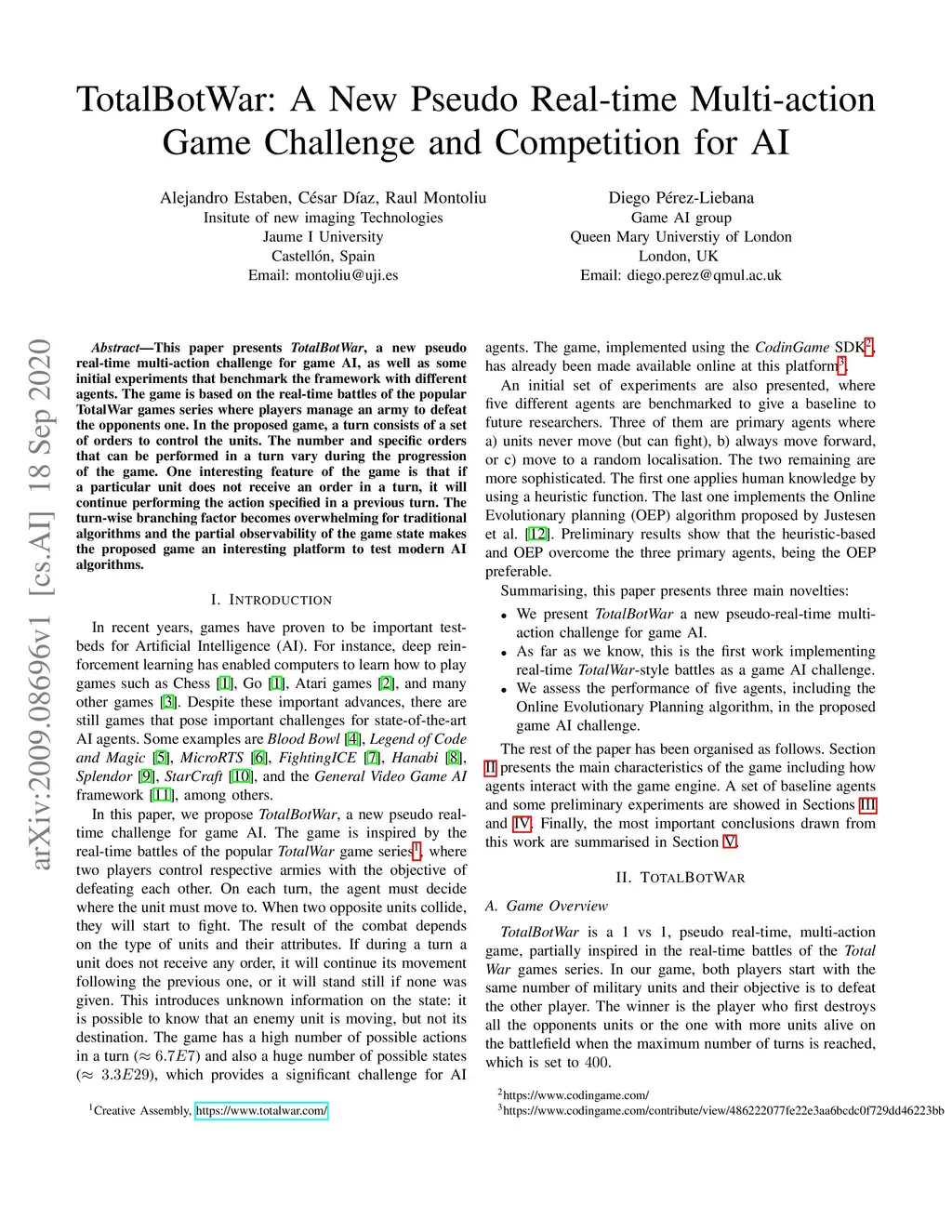 TotalBotWar: A New Pseudo Real-time Multi-action Game Challenge and