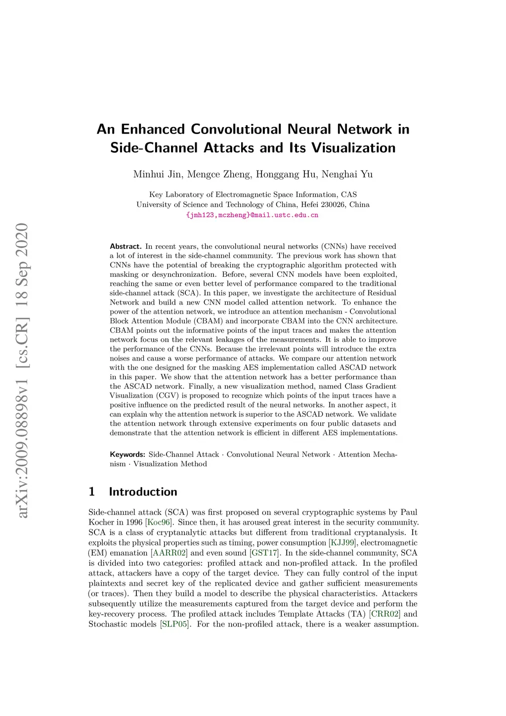 An Enhanced Convolutional Neural Network in Side-Channel Attacks and Its