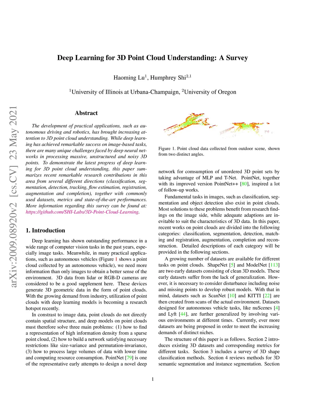 Deep Learning for 3D Point Cloud Understanding: A Survey