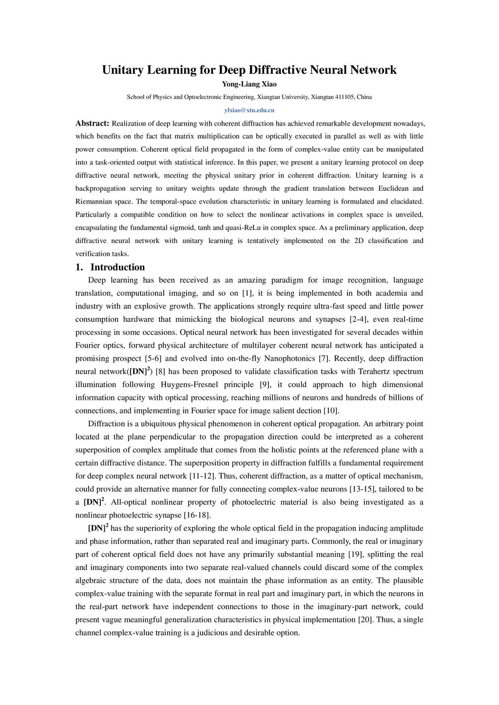 Realization of deep learning with coherent diffraction has achieved remarkable development nowadays, which benefits on the fact that matrix multiplication can be optically executed in parallel as well as with little power consumption. Coherent optical field propagated in the form of complex-value entity can be manipulated into a task-oriented output with statistical inference. In this paper, we present a unitary learning protocol on deep diffractive neural network, meeting the physical unitary prior in coherent diffraction. Unitary learning is a backpropagation serving to unitary weights update through the gradient translation between Euclidean and Riemannian space. The temporal-space evolution characteristic in unitary learning is formulated and elucidated. Particularly a compatible condition on how to select the nonlinear activations in complex space is unveiled, encapsulating the fundamental sigmoid, tanh and quasi-ReLu in complex space. As a preliminary application, deep diffractive neural network with unitary learning is tentatively implemented on the 2D classification and verification tasks.