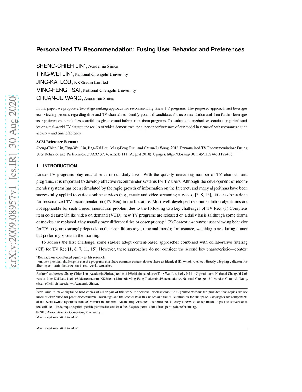 Personalized TV Recommendation: Fusing User Behavior and Preferences